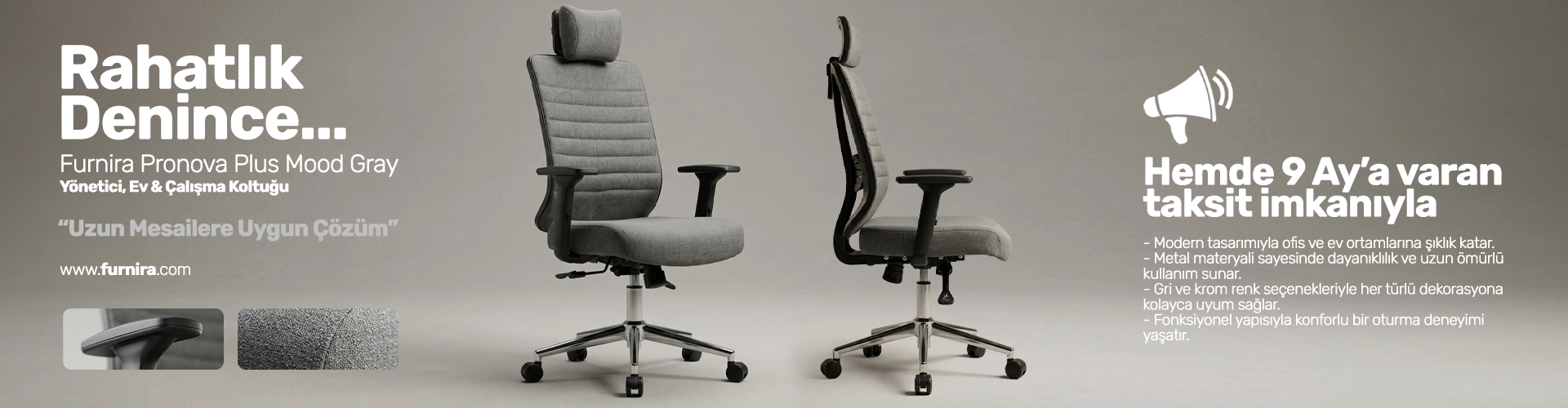 furnira Pronova Plus Mood Gray Yönetici Çalışma Koltuğu | Ayarlanabilir Sırt Yükseklik Kolçak